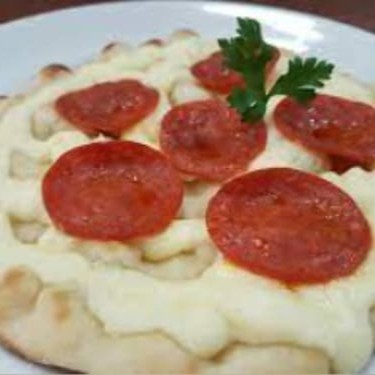 Pão sírio, queijo mussarela, tomate, orégano assado na chapa. Ele vem como um pão sírio dobrado no meio, depois cortado na metade, em formato de 1/4 de um círculo, dois pedaços de 1/4 de um círculo que são enviados no pedido com raio de 10cm.