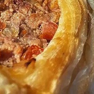 Esfiha aberta de carne.com queijo mussarela.Tempero típico árabe com pimenta síria. Assada na hora na perfeição Utilizamos os melhores ingredientes nesta receita
