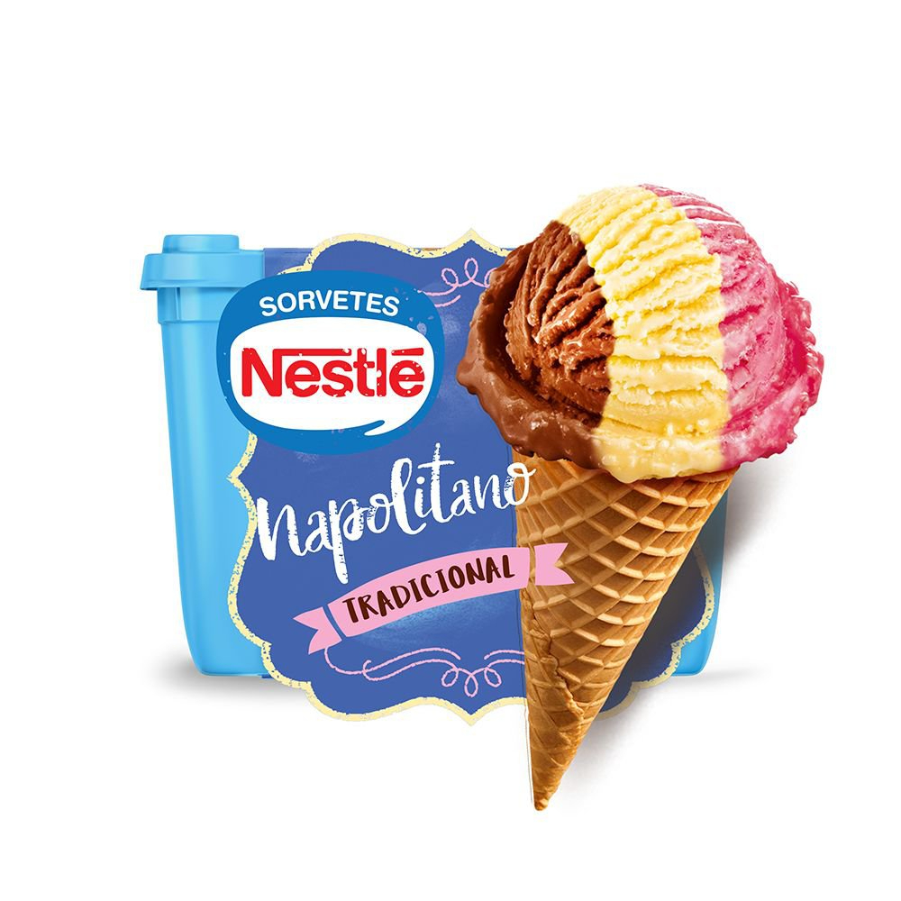 Sorvete Sabor Napolitano Com Flocos Tradicional Nestlé Pote 1,5l