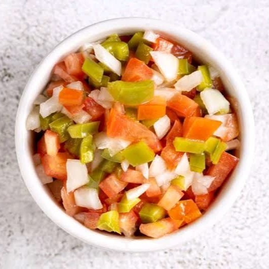 Vinagrete em um pote de 400ml prontinho para vc se deliciar no churrasco.