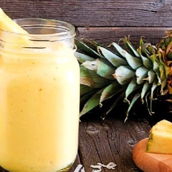 Vitamina de abacaxi com leite 300ml, 100% natural preparado na hora, sem adição de acúcar, preparado na hora com frutas selecionadas. (Acompanha sachês de stevia)