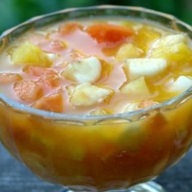 Salada de Frutas M - Pote de 400ml Salada de frutas tropical equatoriana, feita com mamão, bananas, laranja e outras frutas da época. É muito saudável e deliciosa. Obs: Para consumo imediato!