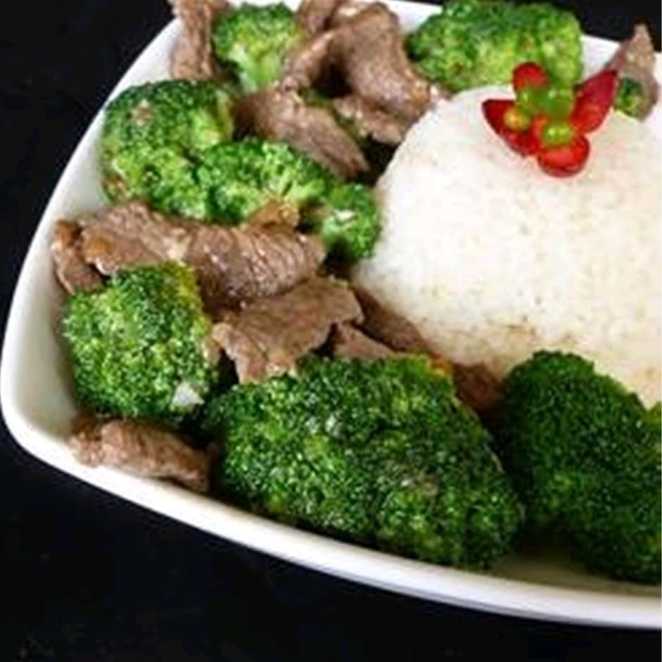 Carne com brócolis é um prato popular da culinária chinesa. Vem com arroz dentro do mesmo box. Um dos pratos mais pedidos. Servido em um box de 800ml com aprox. 650g de comida. É uma combinação de pedaços de carne bovina com brócolis cozidos no vapor, temperados com molho de soja e outros segredos chineses.