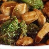 Cubos de peito de frango com brócolis, selecionados temperado ao molho de soja.