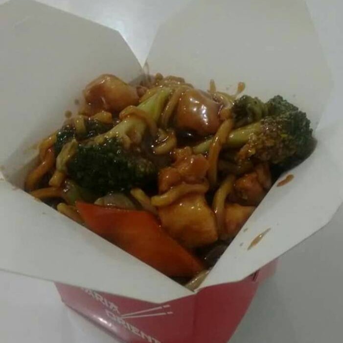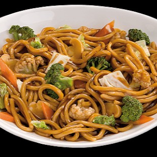 Macarrão com saborosos pedaços de frango, legumes selecionados e temperados ao molho de soja.