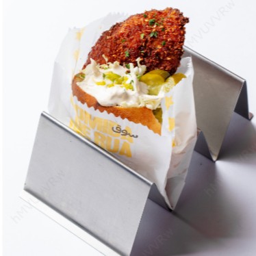 SANDUÍCHE ISRAELENSE DE PEITO DE FRANGO EMPANADO, MAIONESE DE ALHO, SALADA, PICLES, MOLHO TAHINE E TATABILI (MOLHO ISRAELENSE DE PIMENTÃO VERDE, ALHO E LIMÃO). CONTÉM GLÚTEN. CONTÉM OLEAGINOSAS. CONTÉM LACTOSE.