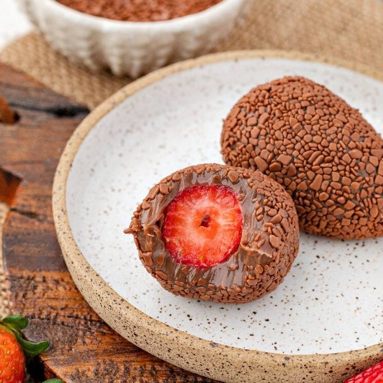 A combinação perfeita do nosso brigadeiro artesanal com um suculento morango inteiro. Aprox. 70g