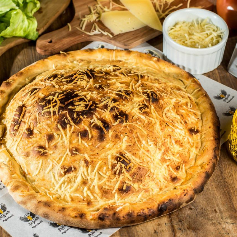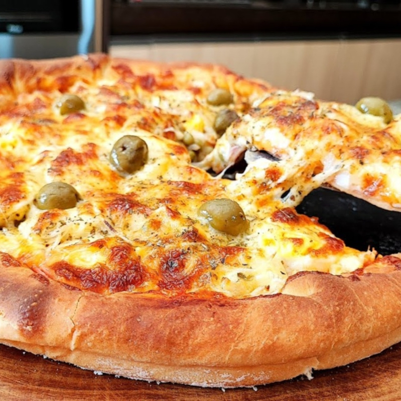 Massa fina de pizza coberta com queijo derretido, perfeita para compartilhar e saborear em momentos descontraídos.