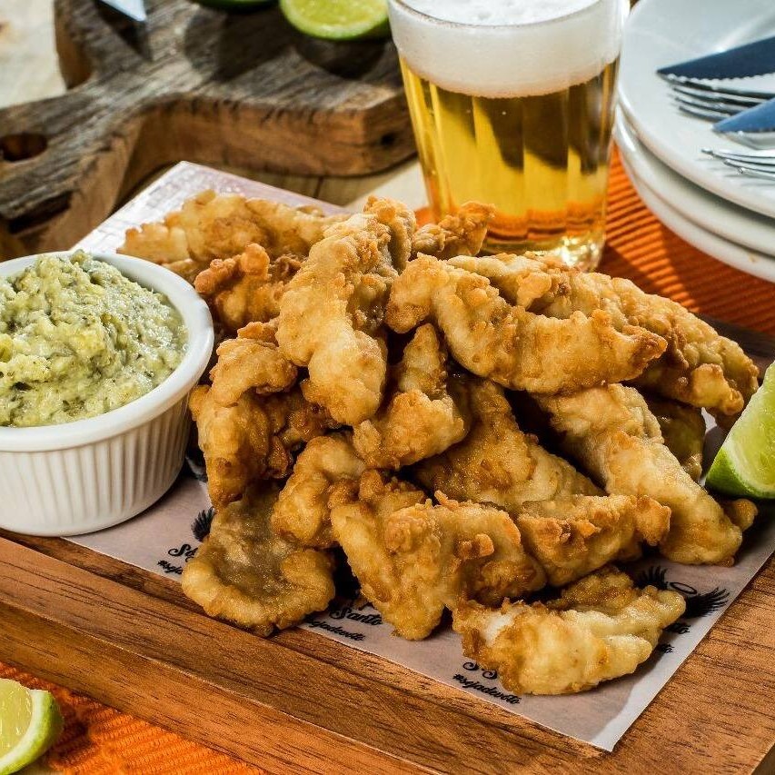 Iscas de peixe com delicioso molho tártaro, perfeitas para um petisco leve e saboroso.
