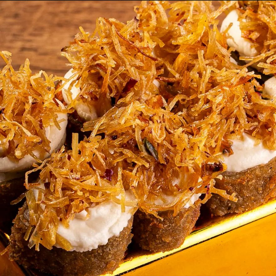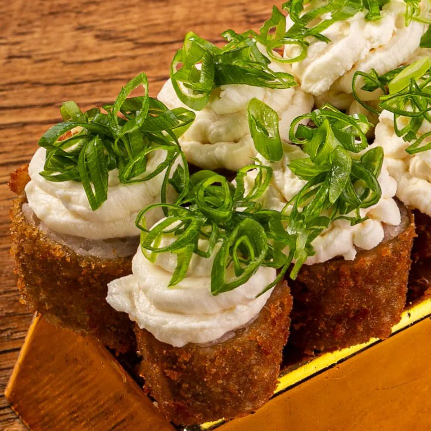 Filadélfia, shari, nori, farinha Panko, creme cheese e cebolinha