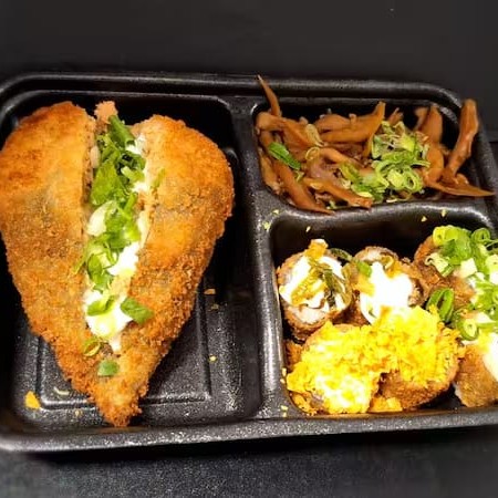 Descubra a delicadeza e a explosão de sabores do nosso combo promocional, composto por 10 hot rolls crocantes, envoltos por uma deliciosa camada de couve crispy. Acompanha 5 niguiris de salmão, frescos e suculentos, que derretem na boca. E para completar, saboreie 5 uramakis Filadélfia, recheados com cream cheese e envoltos por batata crispy, que proporcionam uma experiência gastronômica única e irresistível. Este é um prato perfeito para os amantes da culinária japonesa que procuram por uma combinação de sabores autênticos e texturas incríveis.