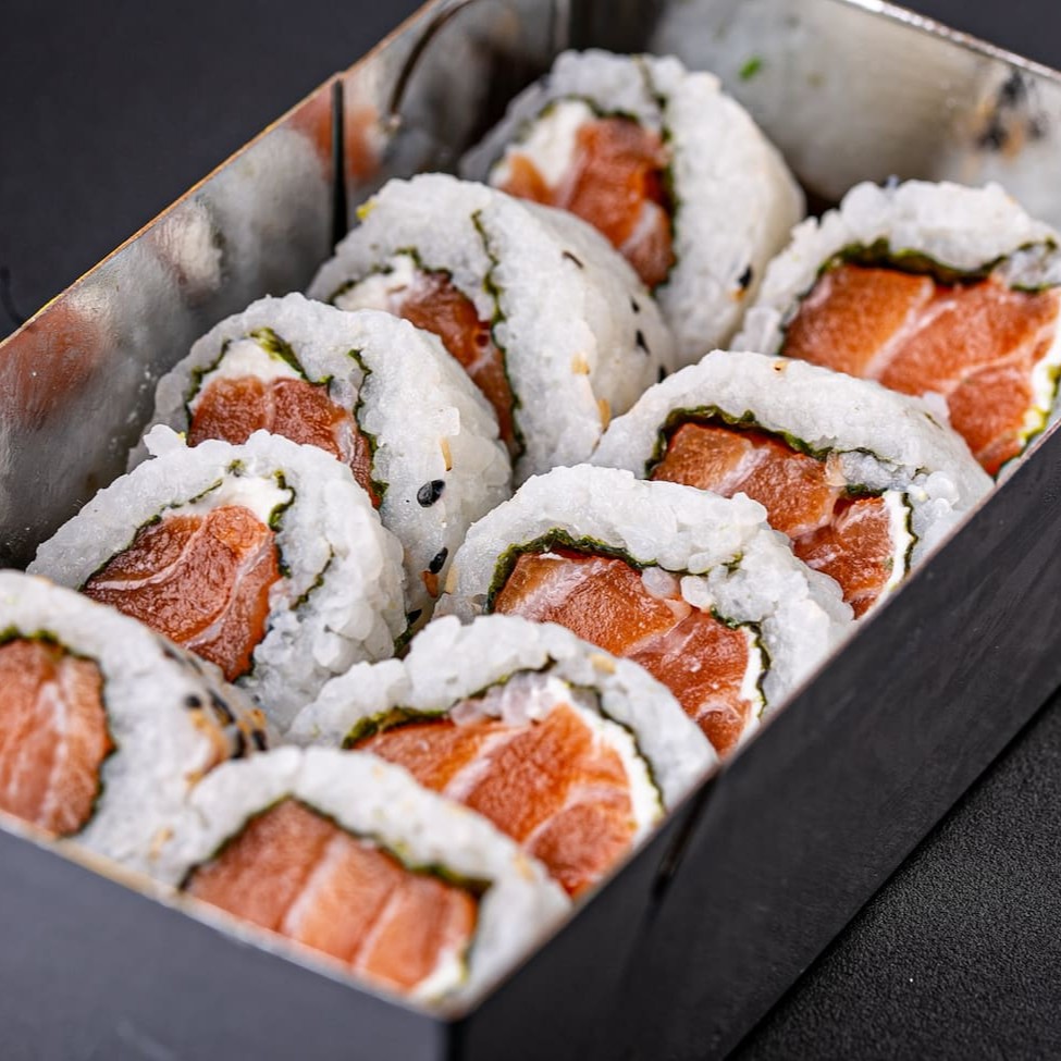 Um irresistível conjunto de 10 Hossomakis de salmão, cuidadosamente enrolados à mão. Cada peça é meticulosamente preenchida com generosas fatias de salmão fresco e vibrante. Este saboroso peixe é envolvido por uma camada de shari, o nosso arroz de sushi de grão curto, delicadamente temperado com vinagre de arroz. Por fim, cada Hossomaki é envolvido por uma folha de nori tostada e crocante, que acrescenta uma textura extra ao prato. Uma celebração de sabores delicados e texturas contrastantes, perfeita para os amantes de sushi!