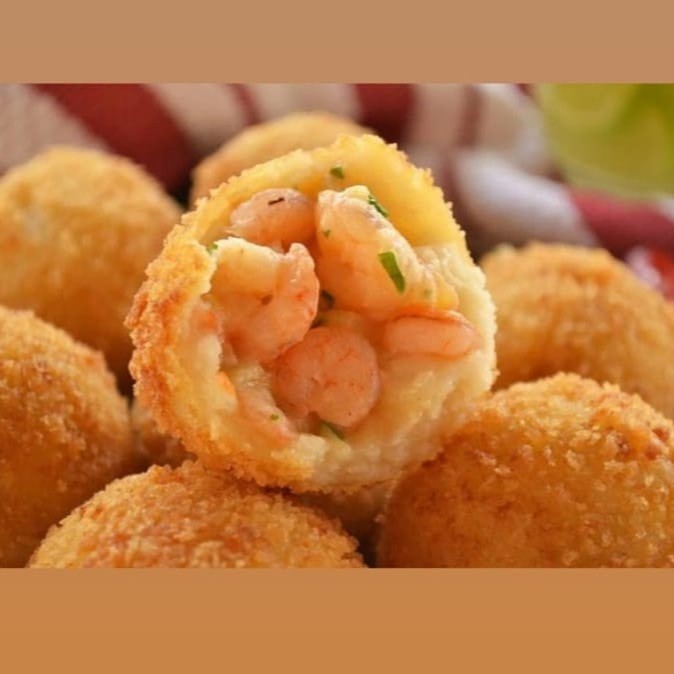 Irresistíveis croquetes recheados com camarões suculentos e um cremoso refogado de temperos frescos. Envoltos em uma casquinha dourada e crocante