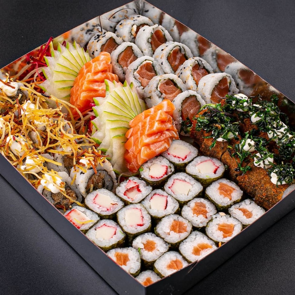 Aproveite nosso Combo Família com 116 peças incríveis em promoção! Este delicioso combo é composto por 20 peças de Salmomaki fresquinho, 20 irresistíveis Hot Holls com Couve Crispy crocante, 20 Uramaki Filadélfia envoltos em Batata Crispy saborosa, 20 Kanimakis delicados e 20 Uramaki de Salmão suculentos. Para finalizar, temos ainda 16 fatias de Sashimi de Salmão fresco e delicioso. Um verdadeiro banquete de sabores para compartilhar com a família e amigos!