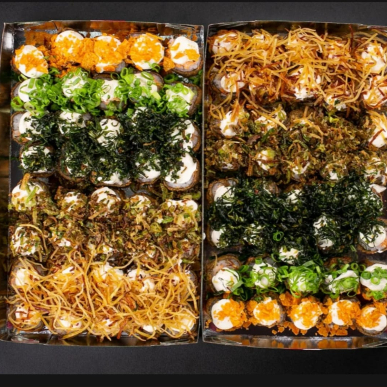 Aproveite nossa promoção de 80 hot rolls sortidos! Você terá a chance de saborear 20 deliciosos hot rolls cobertos com a crocância inigualável dos Doritos, outros 20 hot rolls com batata Crisp, oferecendo um toque irresistível a cada mordida. Além disso, 20 hot rolls com couve frita, trazendo uma textura única para sua experiência gastronômica, e, por fim, 20 hot rolls com alho poró, proporcionando um sabor suave e sofisticado. Uma seleção que une tradição e inovação em um só prato!