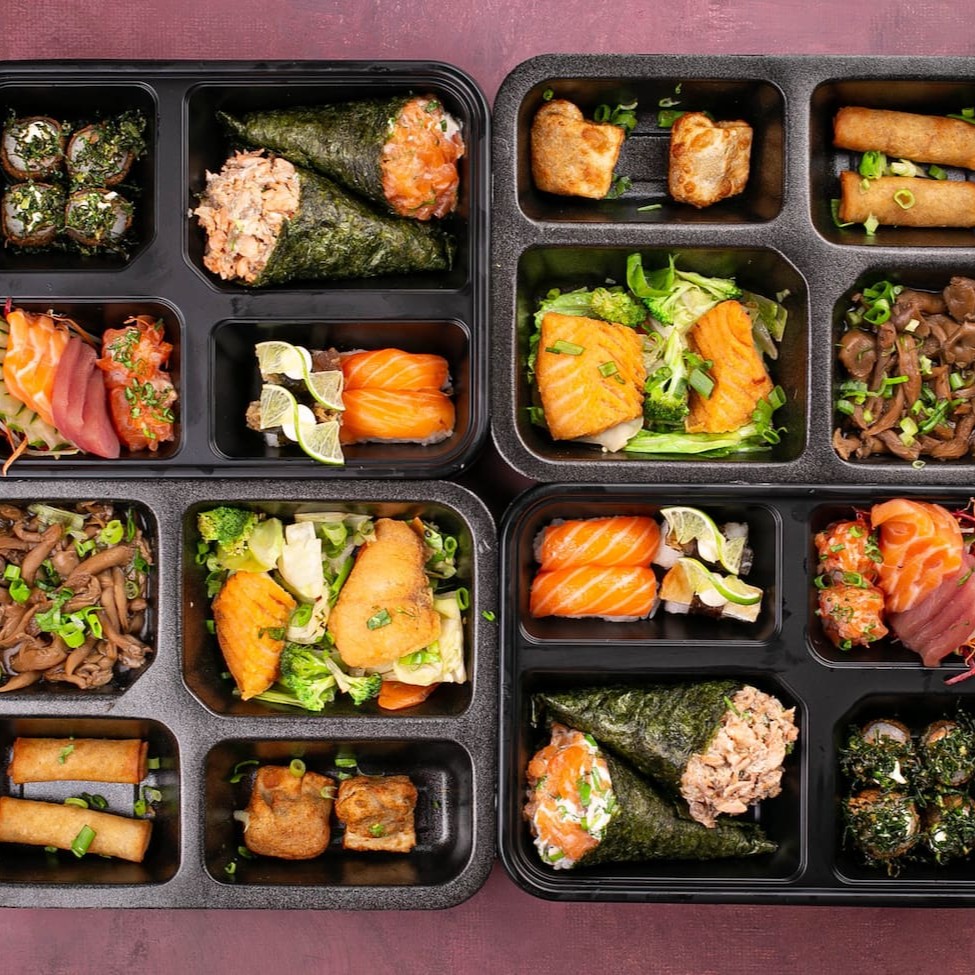6 Sashimi 2 Jhous 2 niguiri skin 2 Niguiri salmão 4 Hot Hol 2 Temaki 100g a escolha do cliente 2 Guioza 2 Harumaki De Queijo 2 Salmões Grelhados com legumes 1 Shimeji 100g