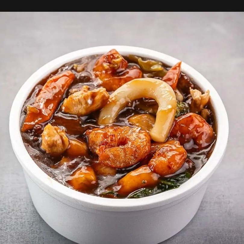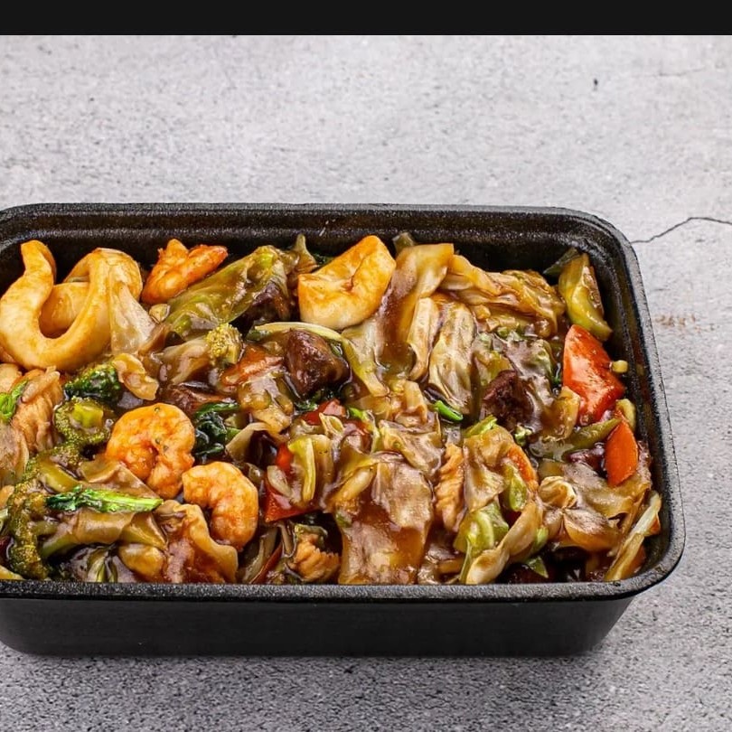 Nosso delicioso yakissoba com camarão, lula, carne, frango e legumes ao molho de soja, para comer sozinho ou compartilhar com a galera. Aproveite!