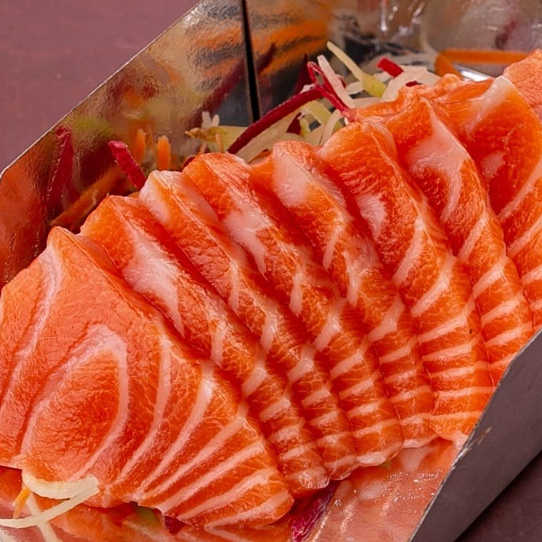 4 sashimi de salmão 4 hossomaki de salmão 2 niguiri de salmão 2 jou de salmão com alho poró 2 uramakis de salmão com cream cheese