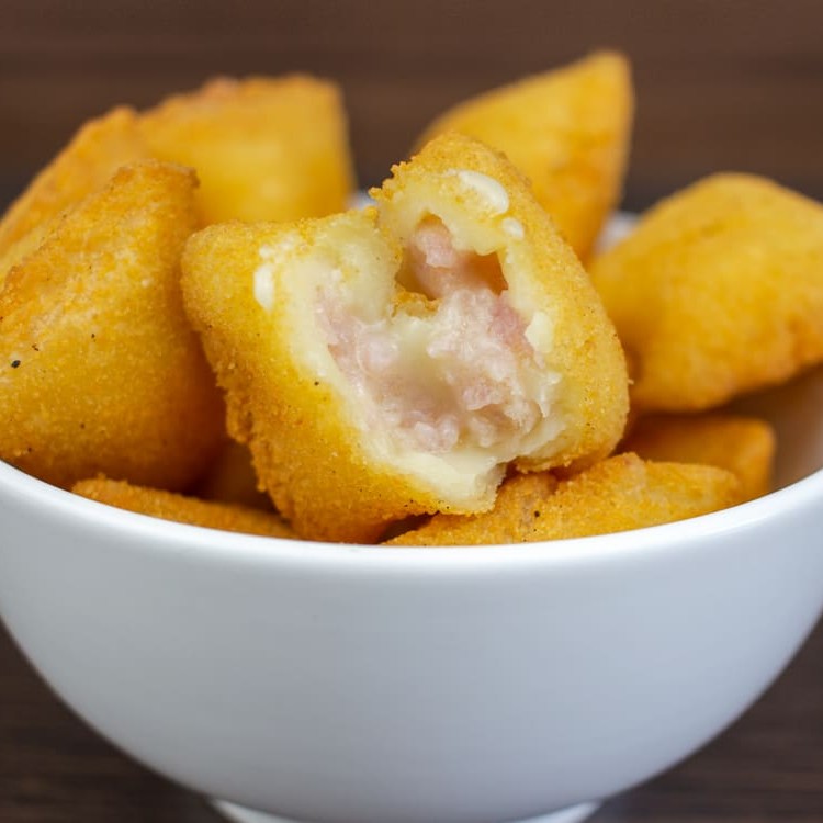 Salgadinho 18 a 20 gr ,produzido com uma massa irresistivelmente saborosa ,recheada com presunto e queijo com um toque de orégano. .Fritos na hora da entrega ,garantindo a crocância e suculencia que vão te surpreender