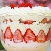 A sobremesa mais vendida. Conumo no dia. Camadas de chantilly com suspiro e morangos
