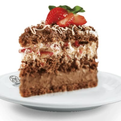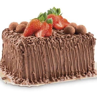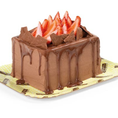 A combinação perfeita entre a intensidade do chocolate e o frescor dos morangos em formato de bolo. A cobertura traz mousse e calda de chocolate, morangos e generosas placas de chocolate.