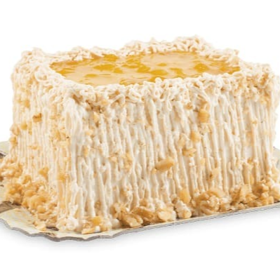 Bolo de massa branca com recheio irresistível de mousse branca, pedaços de damasco e trufas brancas com nozes. A cobertura é uma deliciosa combinação de chantilly cremoso, calda de damasco e nozes crocantes. Você não vai resistir a essa tentação!