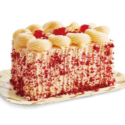 Encante-se com nosso Bolo Red Velvet, com massa macia, recheios irresistíveis de Leite Moça, mousse de cream cheese e uma cobertura de mousse branca delicadamente decorado com cerejas.