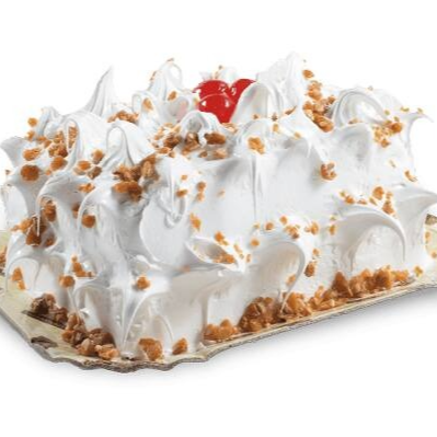 Quer provar algo diferente? Você vai adorar nosso bolo de massa branca, generosamente recheado com creme gelado e o irresistível sabor do doce de leite com nozes. Para tornar essa experiência ainda mais inesquecível, a cobertura cremosa de marshmallow é finalizada com uma pitada crocante de nozes e um toque de cor das cerejas decorativas.
