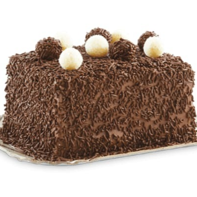 Carinhosamente feito para os amantes do chocolate, este bolo traz uma massa macia de chocolate recheada de trufado de chocolate, cobertura de mousse de chocolate, calda de chocolate com placas de chocolate com cacau em pó.