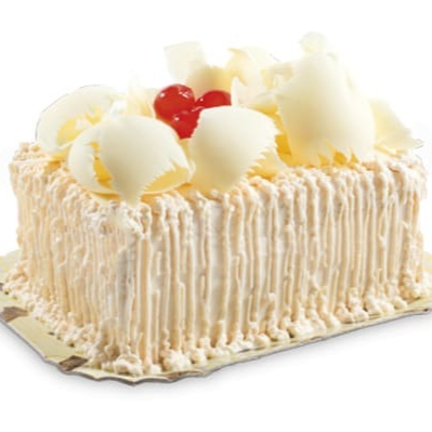 Bolo de massa branca com um recheio cremoso e irresistível de mousse branca com leite em pó. Na cobertura, uma deliciosa camada de mousse branca com raspas de chocolate branco e um toque especial de leite em pó. E para finalizar, cerejas decorativas que complementam perfeitamente essa sobremesa única!