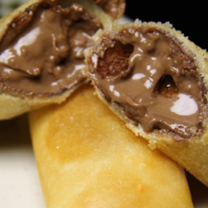 3 unidades de mini harumaki com recheio de chocolate ao leite