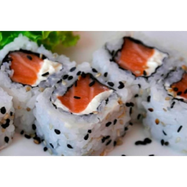 Apresentamos o nosso irresistível sushi: joe feito com salmão. Cuidadosamente preparado com autêntico arroz oriental (shari) que proporciona uma textura suave e sabor único. Este prato é delicadamente envolto por um generoso filé de salmão, fresco e tenro, que se funde harmoniosamente com a cobertura de cream cheese, conferindo uma cremosidade aveludada ao paladar. A finalização com toques de cebolinha fresca adiciona um contraste de sabor marcante, que aguça os sentidos. Uma verdadeira obra-prima da culinária japonesa, ideal para os amantes de Sushi!