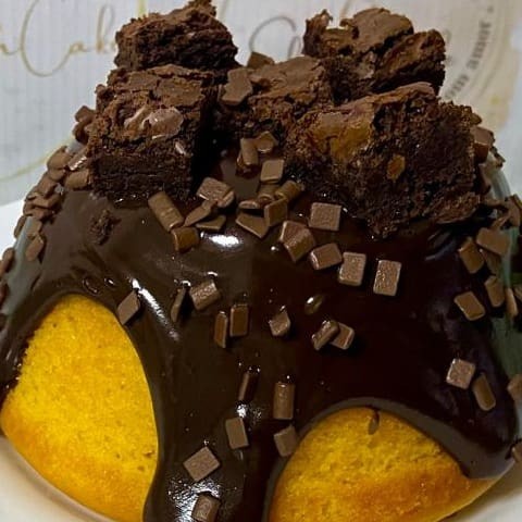 Apresentamos o nosso exuberante 'Bolo Vulcão Caseirinho Brigadeiro'. Esta divina obra-prima caseira é meticulosamente elaborada com uma massa de chocolate extraordinariamente aveludada e incrivelmente macia, que esconde em seu núcleo um generoso recheio de brigadeiro de dar água na boca. Para completar, a cobertura é uma intensa e irresistível calda de brigadeiro, cremosa e luxuosa, que transborda