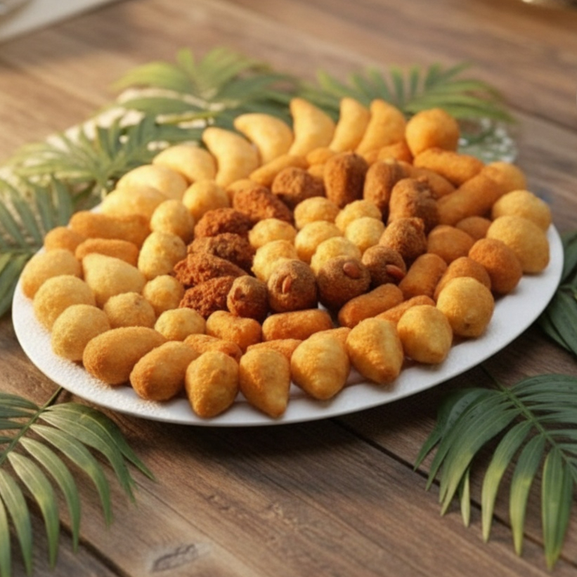 50 Salgados Variados (Coxinhas, Risolis, Bolinha De Queijo, Bolinho De Carne E Bolinho De Calabresa)