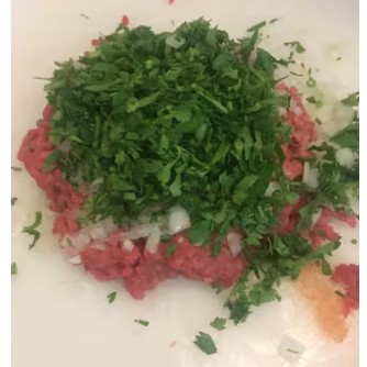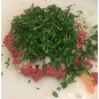 Carne moída temperada com salsinha picada cebola picada e tempero sírio.