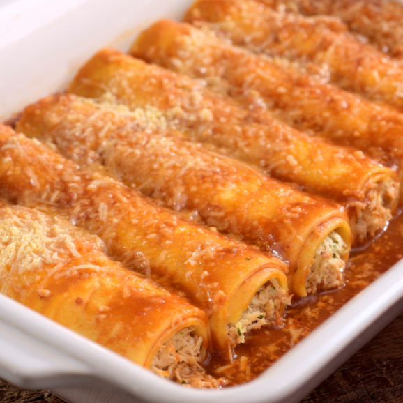 Saboreie nosso Canellones de Frango. Uma opçâo, com 4 unidades.