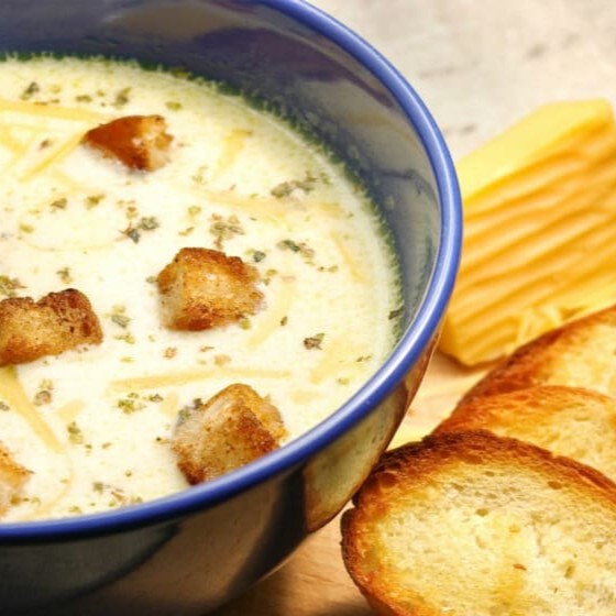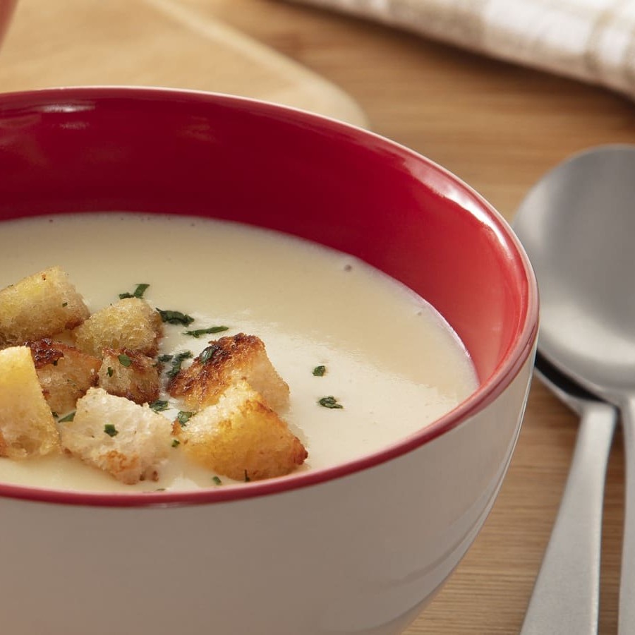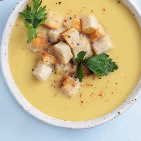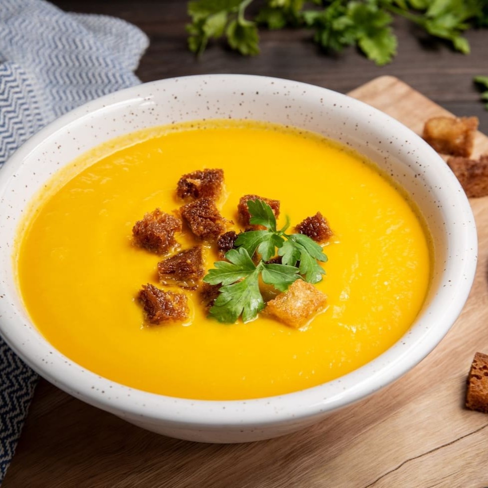 Creme de Mandioquinha aveludado com Queijo Parmesão. Acompanha Croutons.