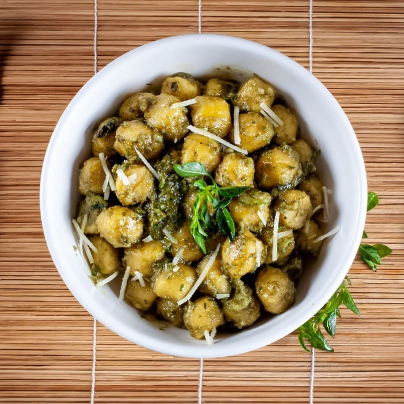 Gnocchi de Batata ao molho Pesto artesanal. (nhoque ao pasta)