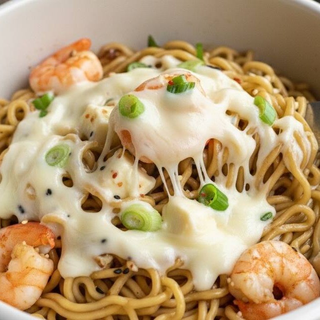 Delicioso macarrão oriental premium preparado com tempero japonês, cebolinha, cebola e moyashi refogados no shoyo e óleo de gergelim e queijo mussarela derretido com um toque de gergelim por cima. Acompanha uma porção suculenta de camarão.