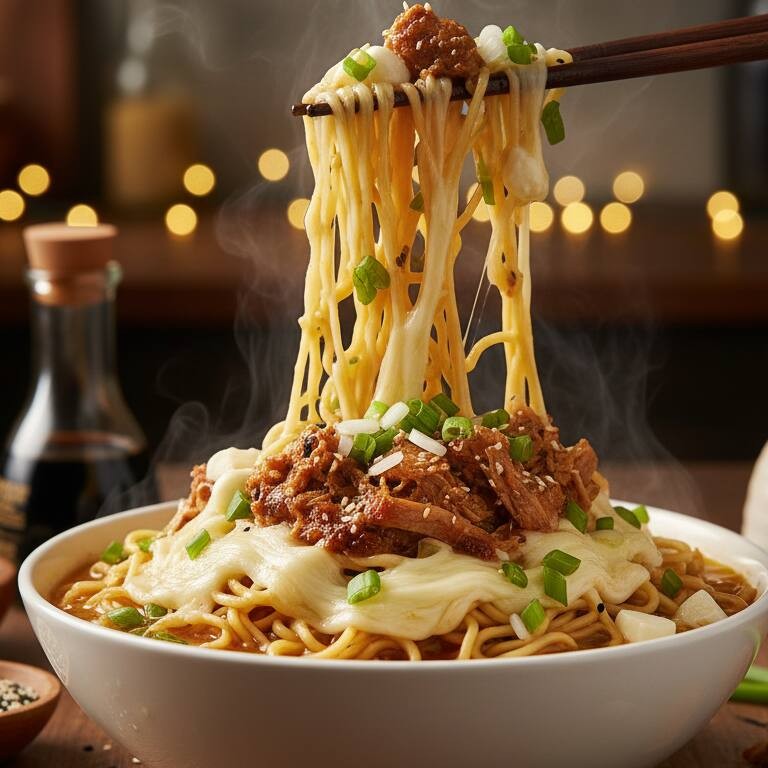 Delicioso macarrão oriental premium preparado com tempero japonês, cebolinha, cebola e moyashi refogados no shoyo e óleo de gergelim e queijo mussarela derretido com um toque de gergelim por cima. Acompanha uma porção suculenta de filé mignon suíno desfiado.