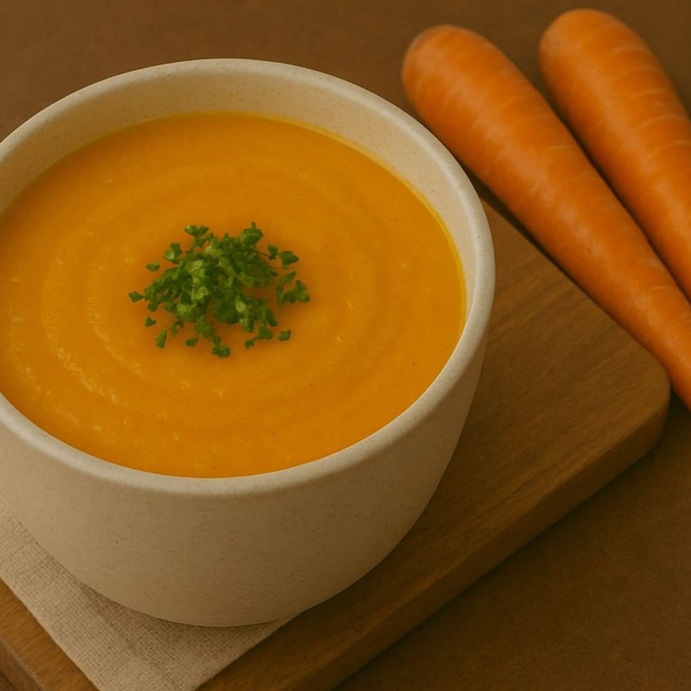 Sopa de cenoura com gengibre, finalizada com creme de leite fresco, noz-moscada e um toque de azeite. Leve, aromática e perfeita para aquecer com elegância. É uma delícia, experimente!