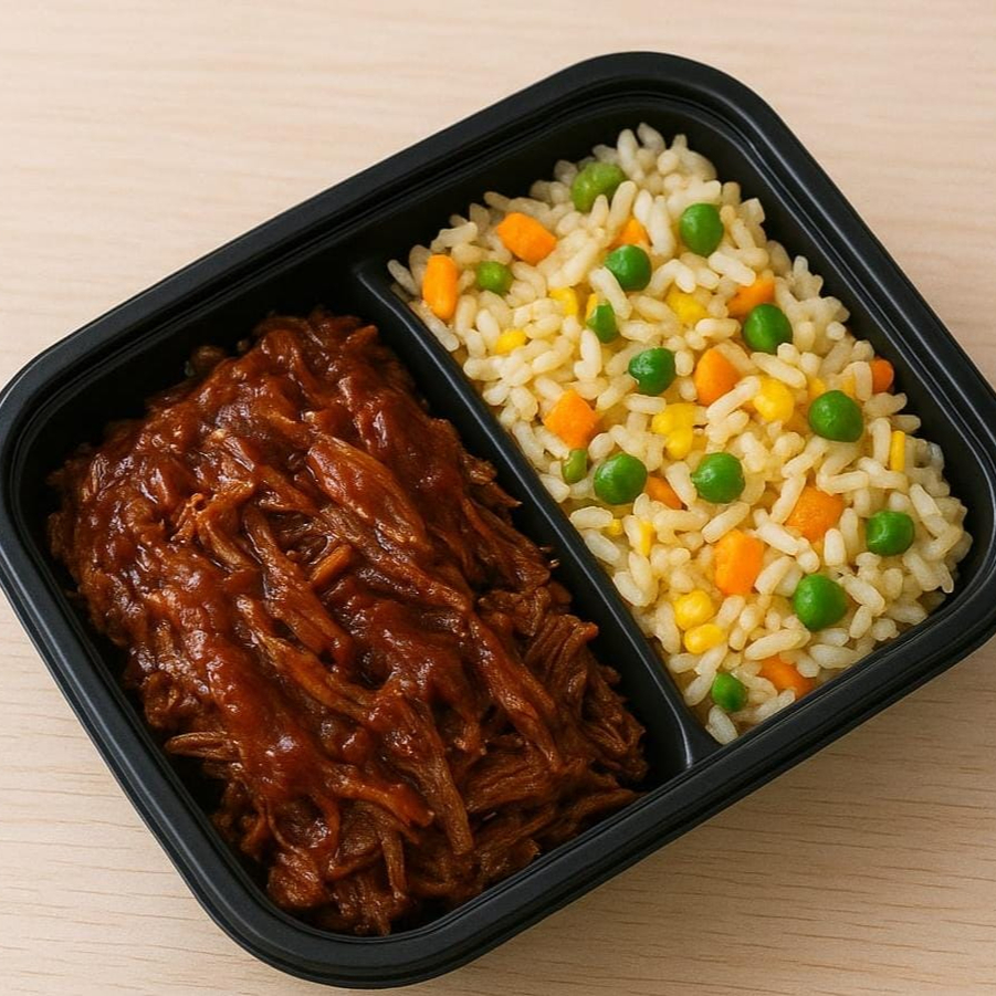 Essa opção de marmita é super deliciosa e leva, arroz a grega com costela levemente desfiada ao molho barbecue para dar um toque especial :)Atenção, este prato é congelado e para aquecê-lo basta remover a tampa e colocar no micro-ondas por 7 minutos.