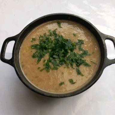 Creme de lentilha com bacon e calabresa. Nossas sopas são congeladas! Esquente no microondas! Tire a tampa faça furos no plástico e esquente por aproximadamente 7 minutos! *imagem ilustrativa