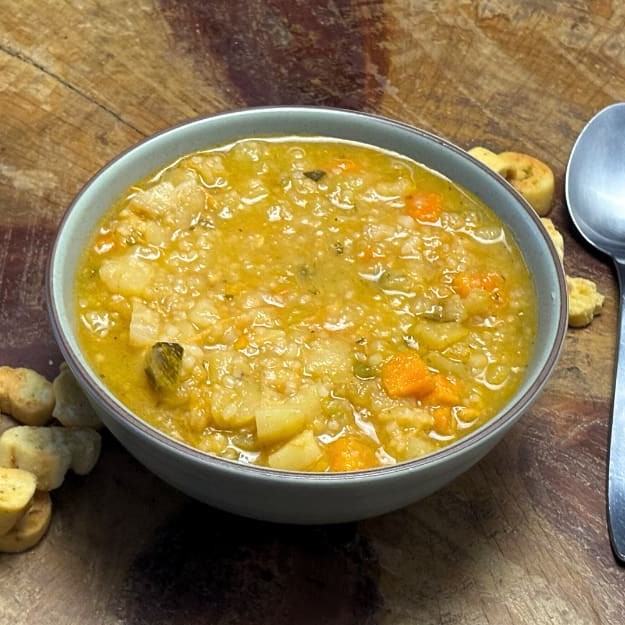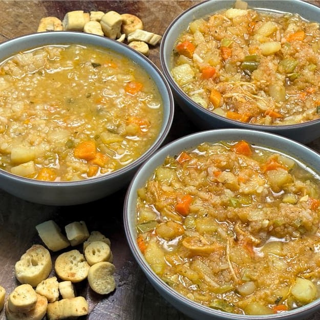 Caldo feito com Mandioca, batata, cenoura e frango desfiado. Leve 1 litro de caldo quentinho! Nossas sopas já estão prontas então Não é possível retirar ingredientes. Serve 2 pessoas (1l)