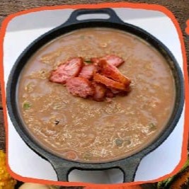 Este Caldo é feito com: Batata, couve, calabresa, bacon.