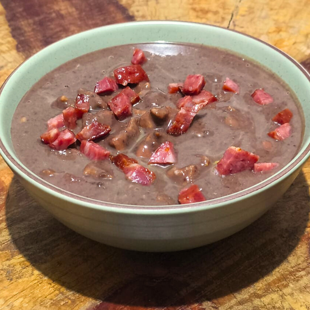 O Caldinho de Feijoada é feito com feijão preto cremoso e bem temperado, acompanhado de calabresa, bacon e lombo suíno em pedaços que dão um sabor irresistível. Uma receita encorpada e cheia de tradição, perfeita para aquecer e matar a fome! Embalagem com 500 ml. Nossas sopas já estão prontas então Não é possível retirar ingredientes.