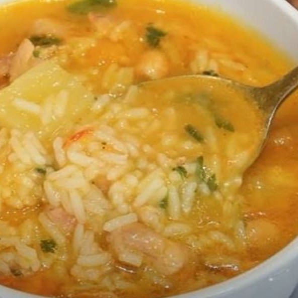 Alho , cebola , frango desfiado , arroz , batata
