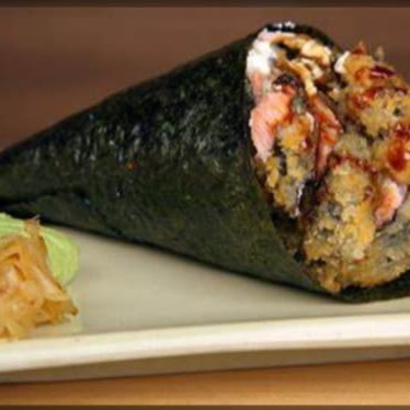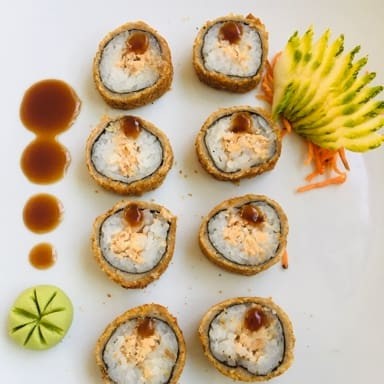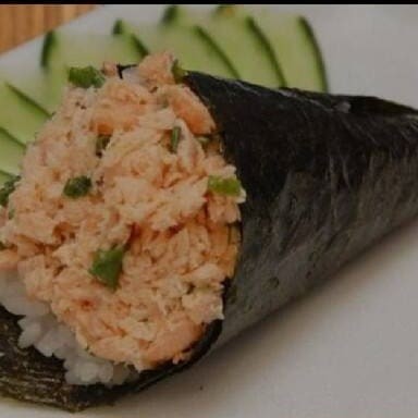 Hot holl fatiado. Ex: Nori, Arroz, Salmão grelhado, cream cheese e tarê.