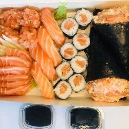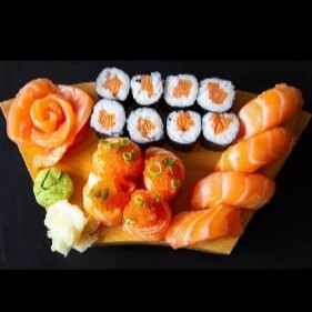 6.Sashimi salmão 4.Niguiri salmão 4. Djou salmão 8.Shakemaki + 2.Temakis a escolha! (serve 1 pessoas)