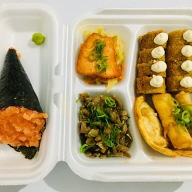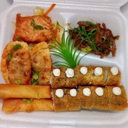 1.salmão grelhado/legumes 1.shimeji/cebolinha 2.Harumaki de queijo 2.Guioza de carne 10.Hot holl/cream cheese & molho tarê. Bom apetite!